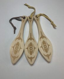 $30.00Set of 4 ornaments using Indigenous West Coast designs in a wood box. Designs include Sun, Moon, Salmon, and Feather ornaments. Each ornament is in red cedar and laser cut with design on both sides.