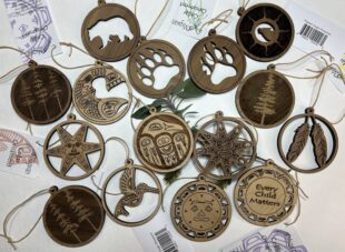 Migwan is Don Bonner, son of Douglas and Carol Bonner. He is a member of the Shabot Obaadjiwan First Nation, part of the Bear Clan of the Algonquin Nation. He uses multiple methods of creating contemporary art that draws inspiration from traditional styles. Don is grateful to the People of Snuneymuxw, on whose traditional lands he currently lives. He is grateful for the honour of working with local Elders and Knowledge Keepers in the pursuit of developing his art. Don finds inspiration from his mentors and the natural surroundings of the west coast.